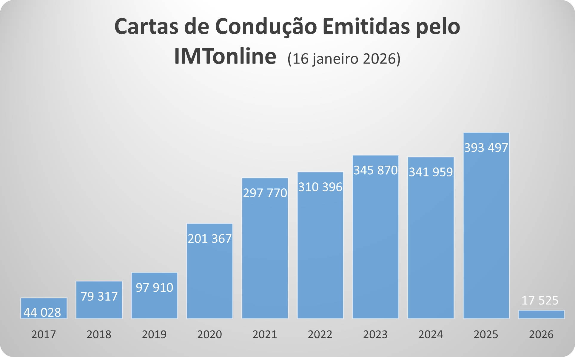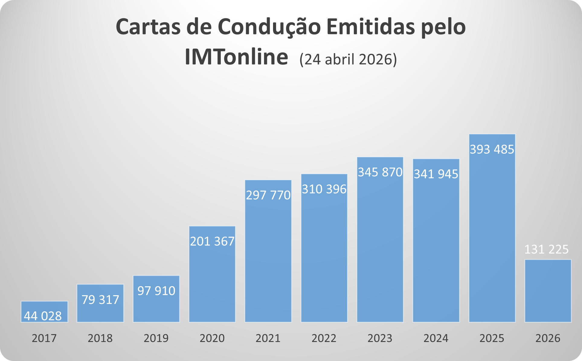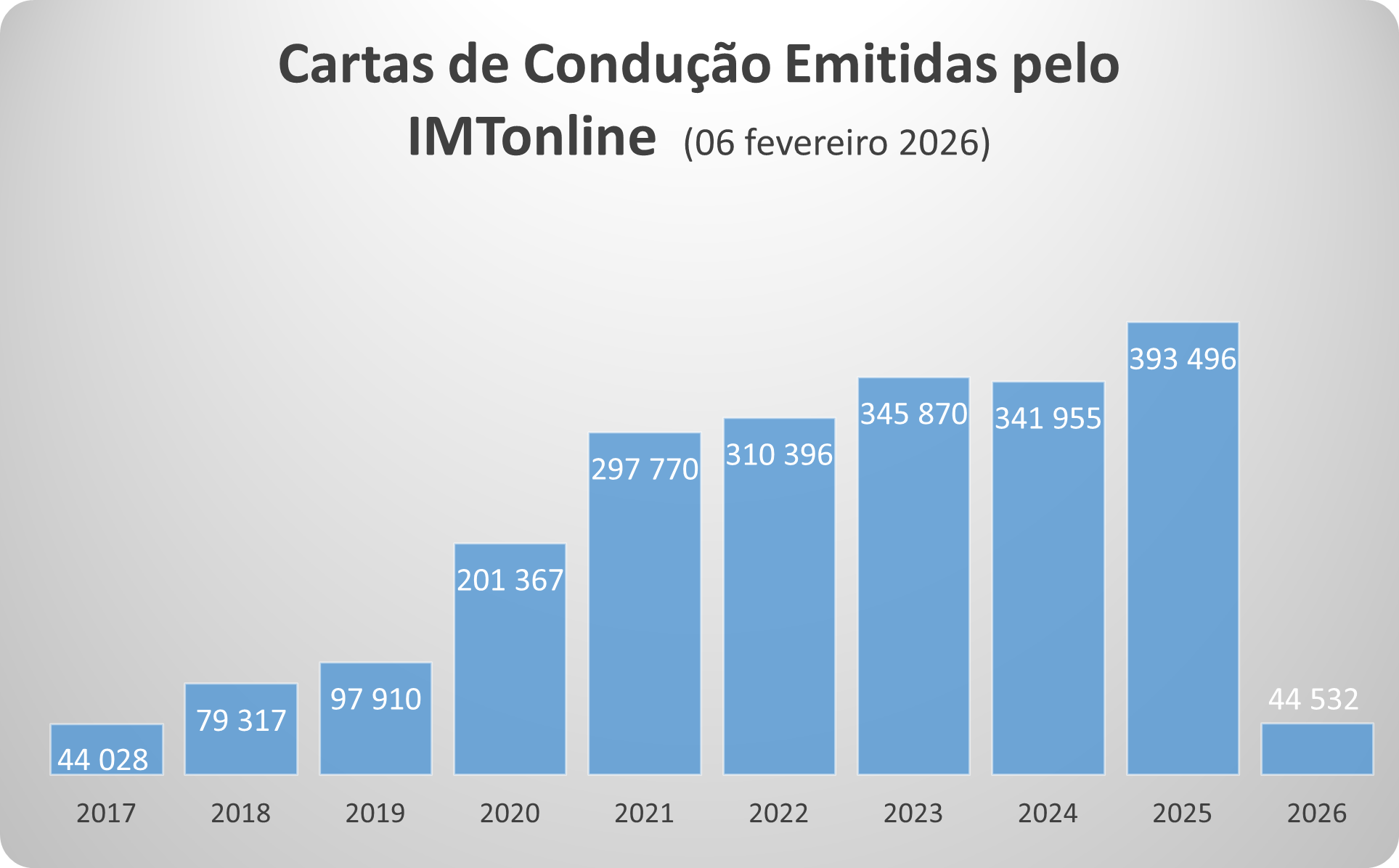 Acompanhe aqui, de forma simples e transparente, dados que refletem várias áreas da atividade do IMT: Emissão de Cartas de Condução, Atendimento ao Público, Provas Pendentes, Boletim Estatístico e Indicadores TVDE.