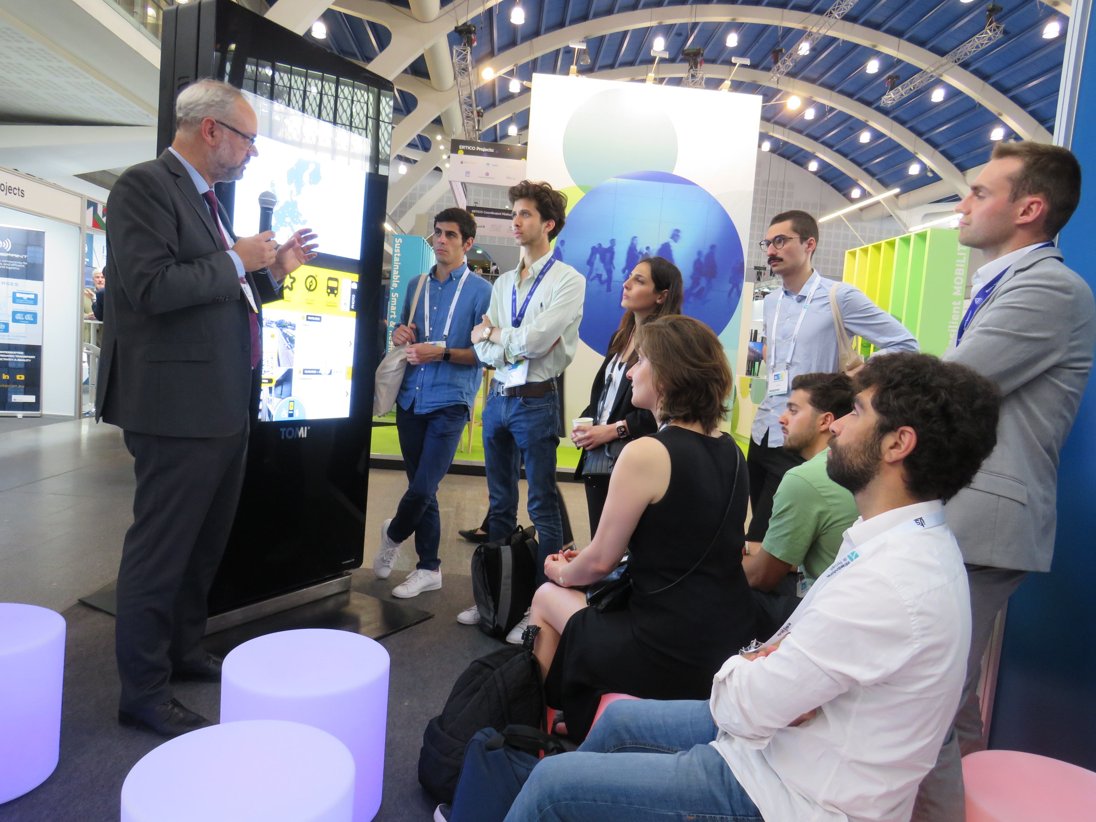 Além das sessões programadas que ocorreram no espaço do stand do IMT, foi promovida uma sessão espontânea, direcionada a estudantes franceses do mestrado especializado em Smart Mobility, da École des Ponts Paris Tech, que desenvolve investigação ligada aos desafios da transição ecológica.