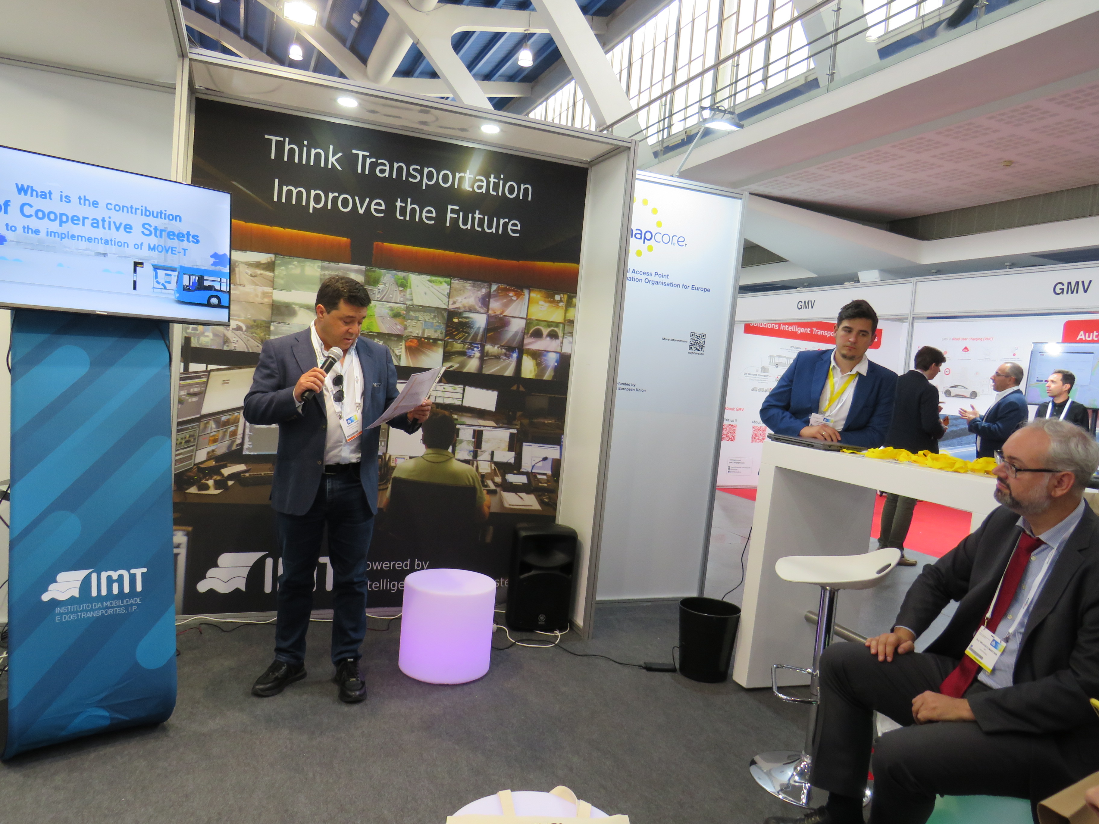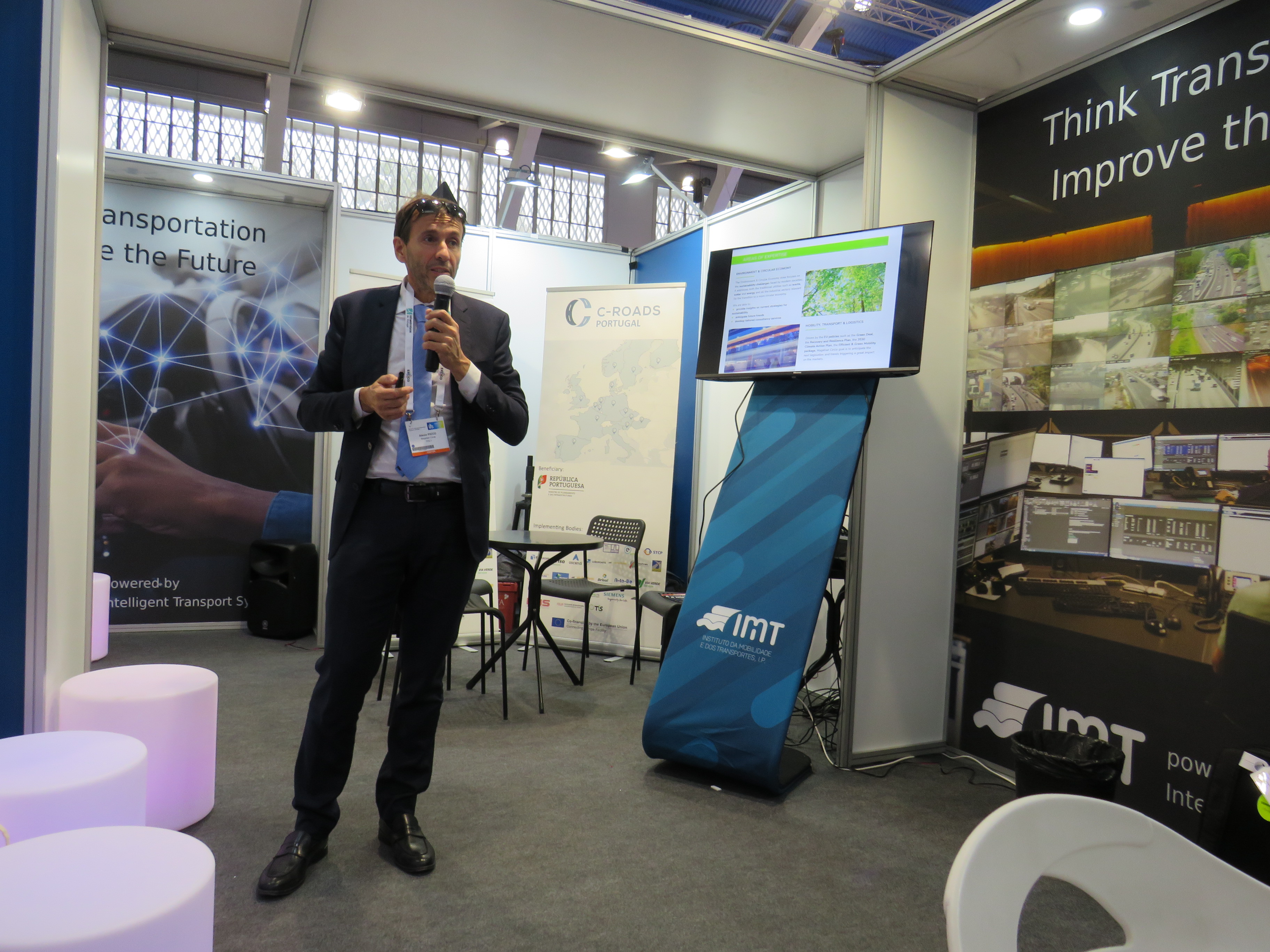 Ao longo dos 3 dias do Congresso tiveram lugar, no stand do IMT, várias sessões temáticas para divulgação de vários projetos nos quais o IMT coordena ou participa, destacando algumas das soluções ITS e C-ITS disponíveis em Portugal, e na Europa, desenvolvidas no âmbito da cooperação entre entidades parceiras.