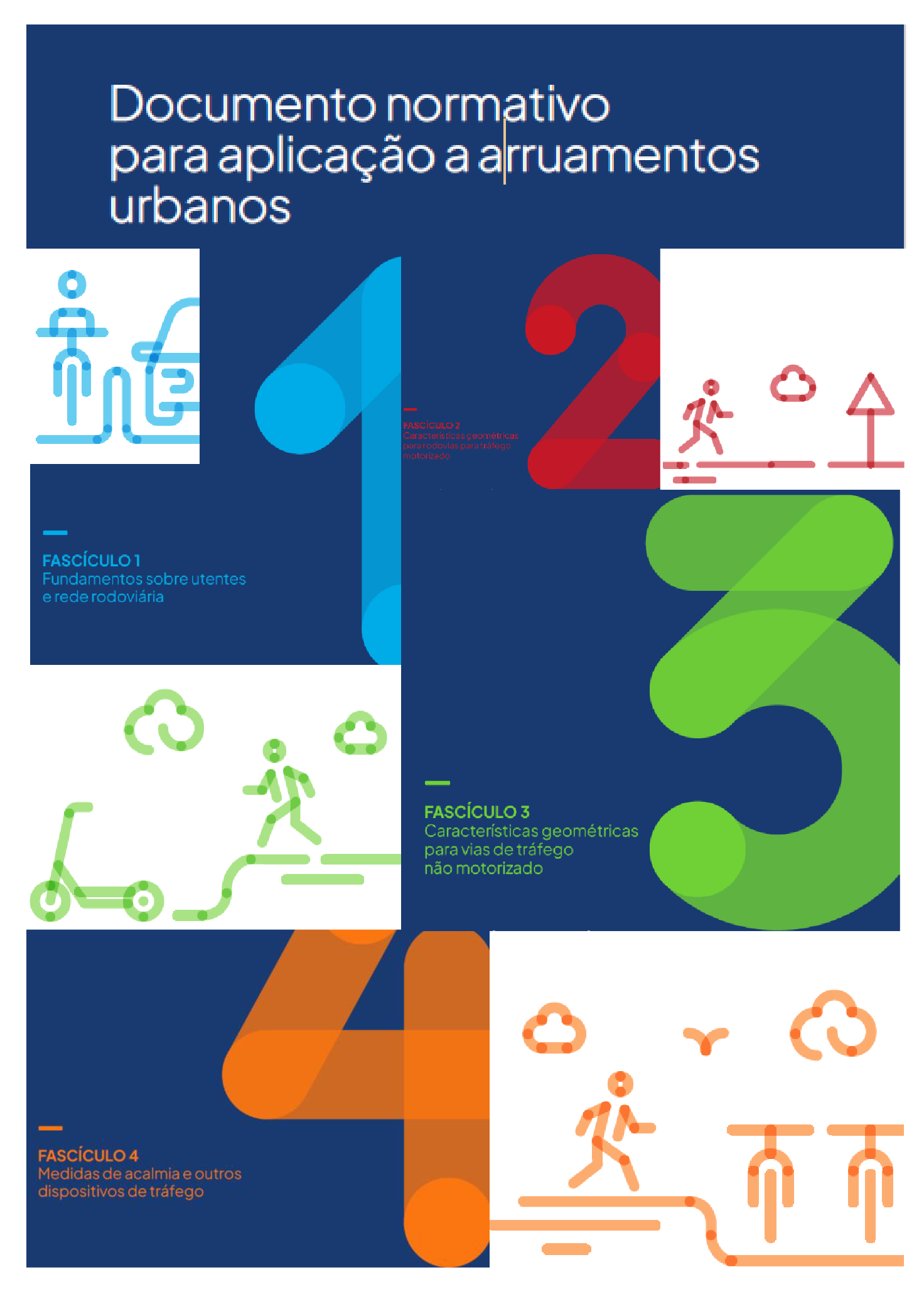 O Documento Normativo para aplicação a Arruamentos Urbanos desenvolvido pelo IMT e pelo LNEC, no âmbito do Plano Estratégico de Segurança Rodoviária (PENSE 2020 – medida A25.92), e da Estratégia Nacional para a Mobilidade Ativa Ciclável 2020-2030 (ENMAC – Medida E1 -1 Desenvolver e aplicar um guia de normas nacionais para intervenções físicas), está organizado em 4 fascículos: