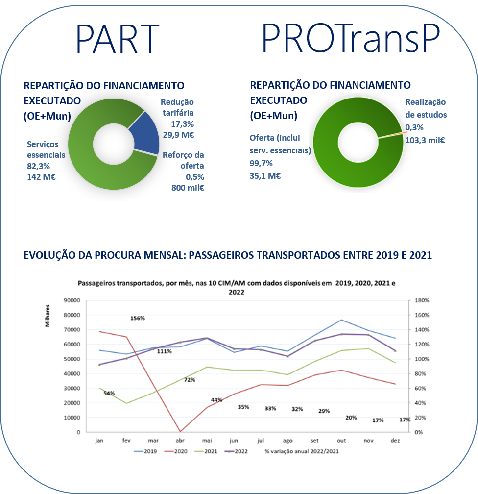 À semelhança de 2021, a avaliação feita para o ano de 2022, apesar da retoma assinalável na procura, continua a ser condicionada pela situação epidemiológica causada pela pandemia COVID-19 que, desde março de 2020, fundamentou a criação de um regime excecional de apoio aos serviços de transporte públicos essenciais que, ao abrigo do Decreto-Lei n.º 14-C/2020, de 7 abril, veio estabelecer ajustamentos aos procedimentos inerentes ao PART e ao PROTransP.