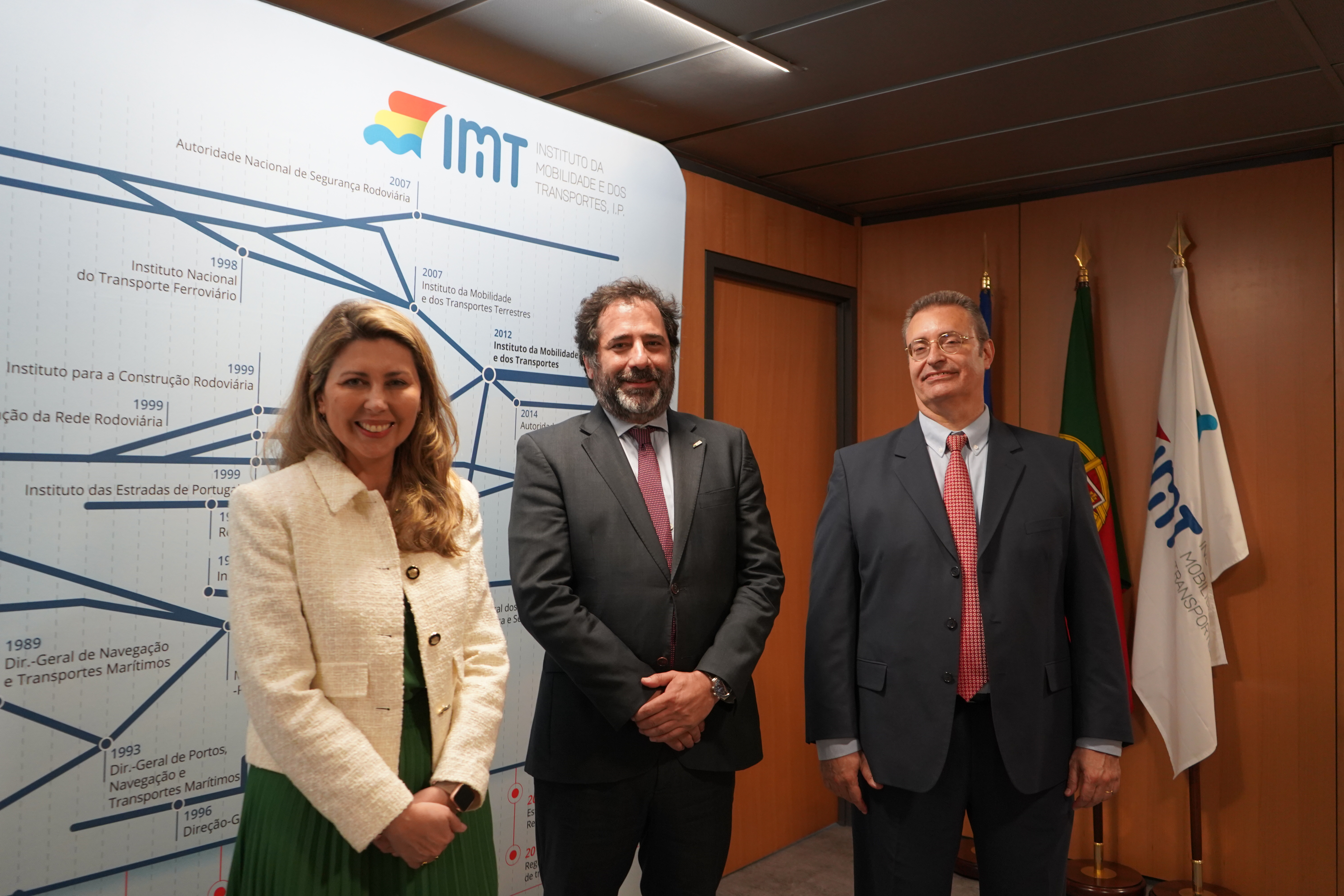 A comitiva, encabeçada pela Secretária Nacional de Transporte Rodoviário do Brasil, Viviane Esse, foi recebida pelo presidente do IMT, João Jesus Caetano, pelo Diretor de Serviços de Gestão de Contratos e Concessões e pelo Gabinete de Assessoria Técnica.
