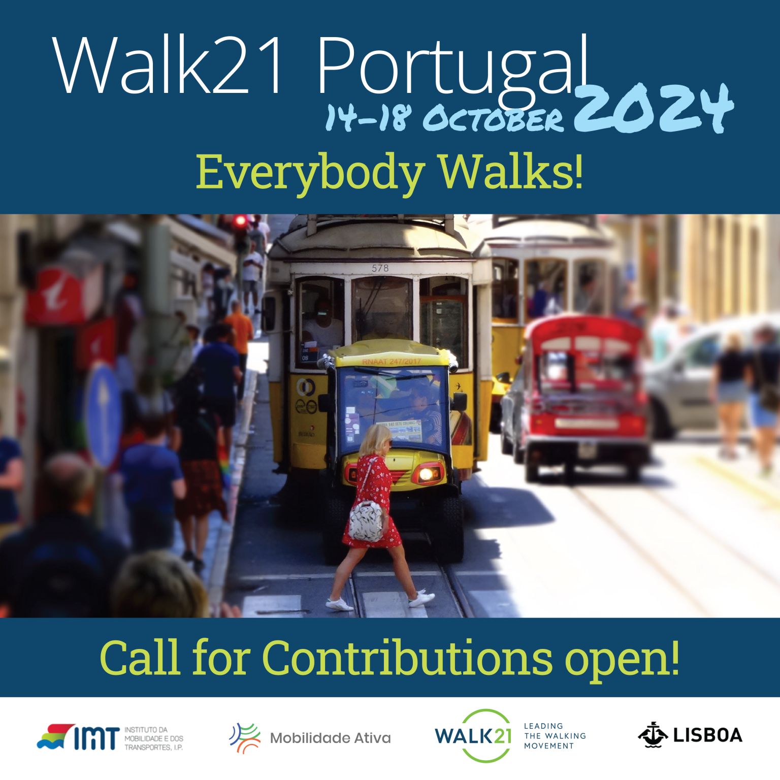 A próxima edição da Walk 21, a mais importante conferência dedicada à mobilidade pedonal, tem lugar em Lisboa, entre os dias 14 e 18 de outubro de 2024. A conferência é organizada pelo @IMT, em representação da @Republica Portuguesa e em parceria com a Câmara Municipal de Lisboa, e adotou o mote da Estratégia Nacional para a Mobilidade Ativa Pedonal “Somos Todos Peões”.